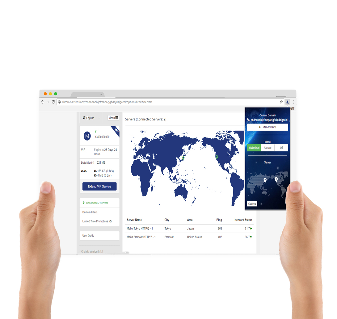 Maikr is adapted to any devices (Windows, Mac, Linux) thanks to our Google Chrome extension. Secure your browsing in just a few clicks.