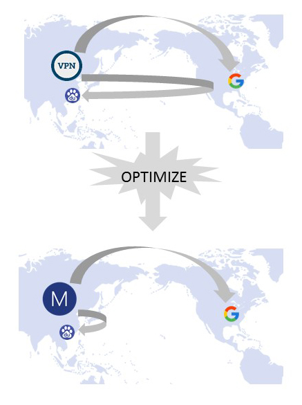 Maikr concurrently connects multiple servers across the globe: United States of America (East and West Coast), Japan, Singpore, Germany, United Kingdom, Netherlands, Hong Kong, Korea & Russia